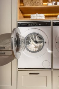 The machine incorporates the features expected by today’s discerning homeowners – child lock, cold fill, speed washing, easy iron, extra rinse, touch control, door safety lock, variable spin speed, low noise brushless motor. Programmes comprise rapid 15 minutes, jeans, fast, eco, rinse, spin/drain, colours, cotton, allergy safe, outdoor, duvet, and hand wash; and options include delay timer, spin speed selection, temperature selection, rapid, easy iron, and start/pause.